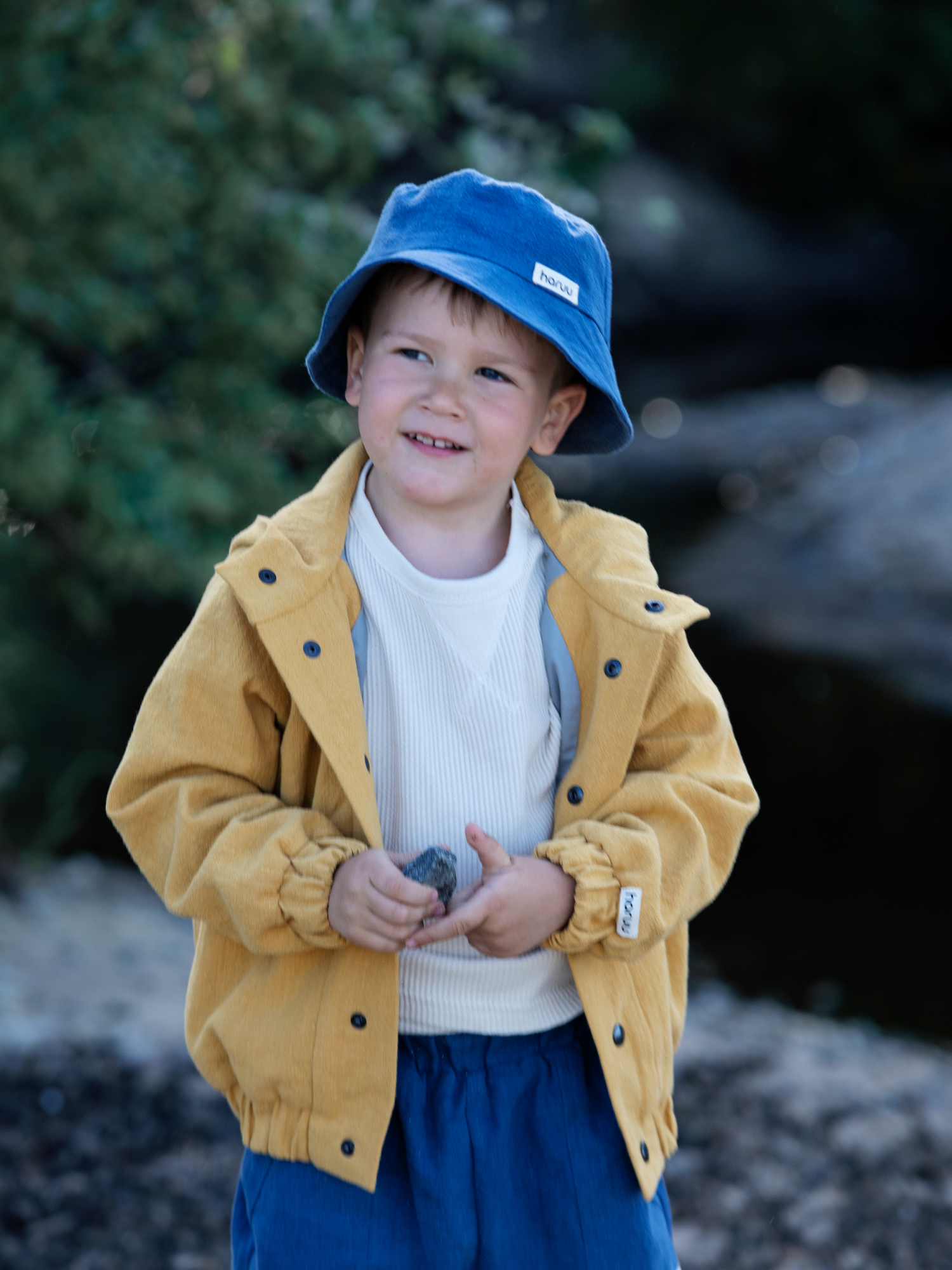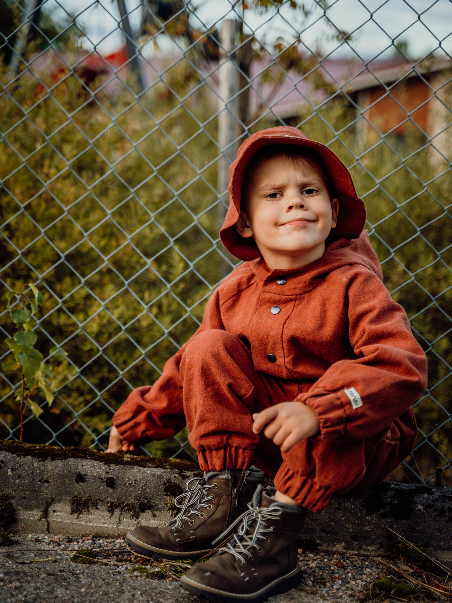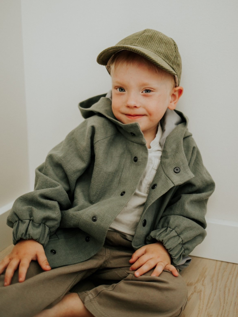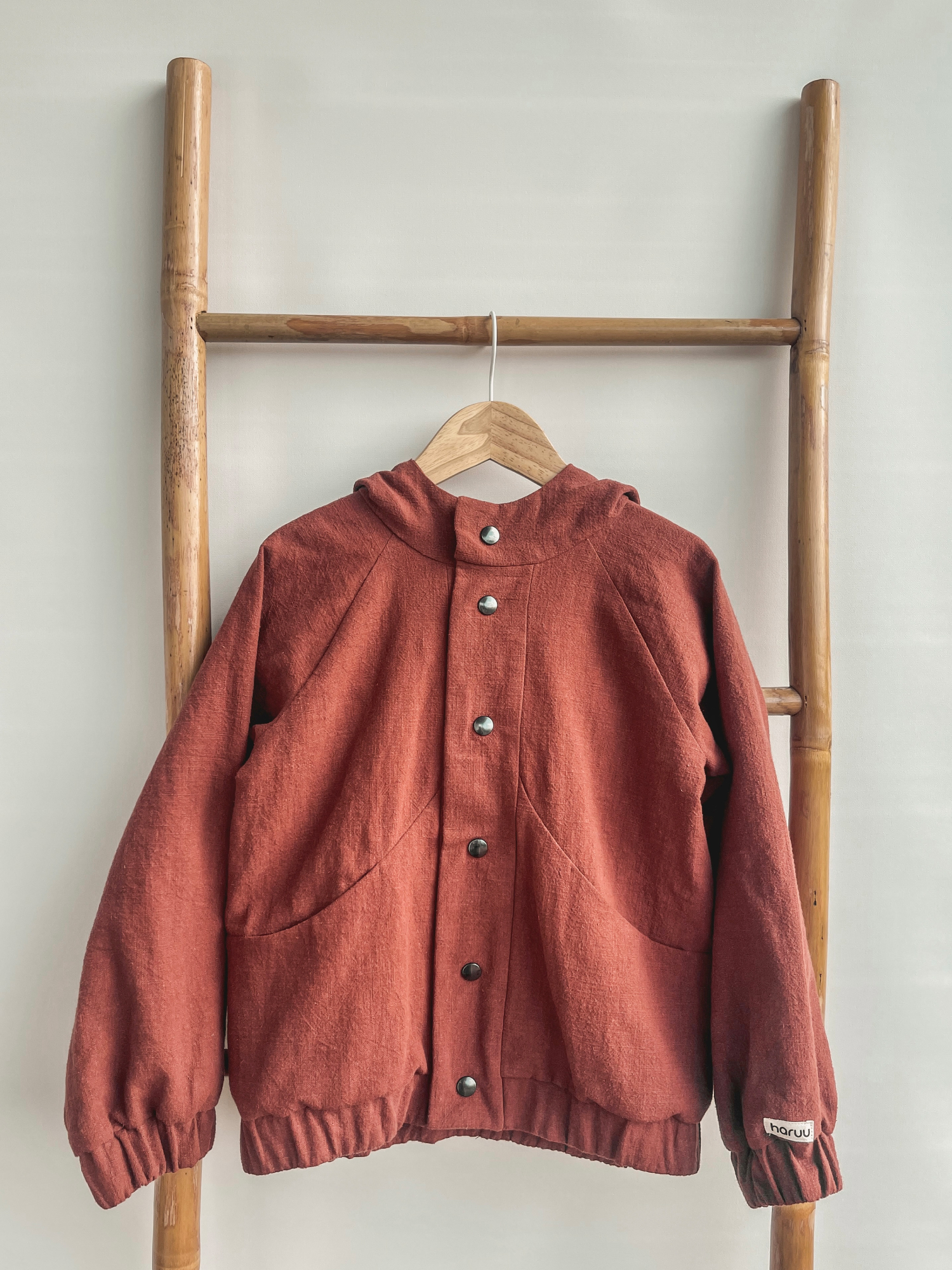 Unisex bomberjakk on hingavast linasest materjalist, mis on pehme ning on mõeldud aastaringseks kasutamiseks – soojemal ajal välisjakina, jahedamal ajal sisejakina. Seljaosa kaunistab hundi tikand, mis muudab kandmise lapsele mängulisemaks. Ees olevad trendikad trukid teevad bomberi kasutuse lihtsaks. Bomberil on ilutaskud. Bomberjakk on valmistatud keskkonna sõbralikust kangast, mis ei kortsu.