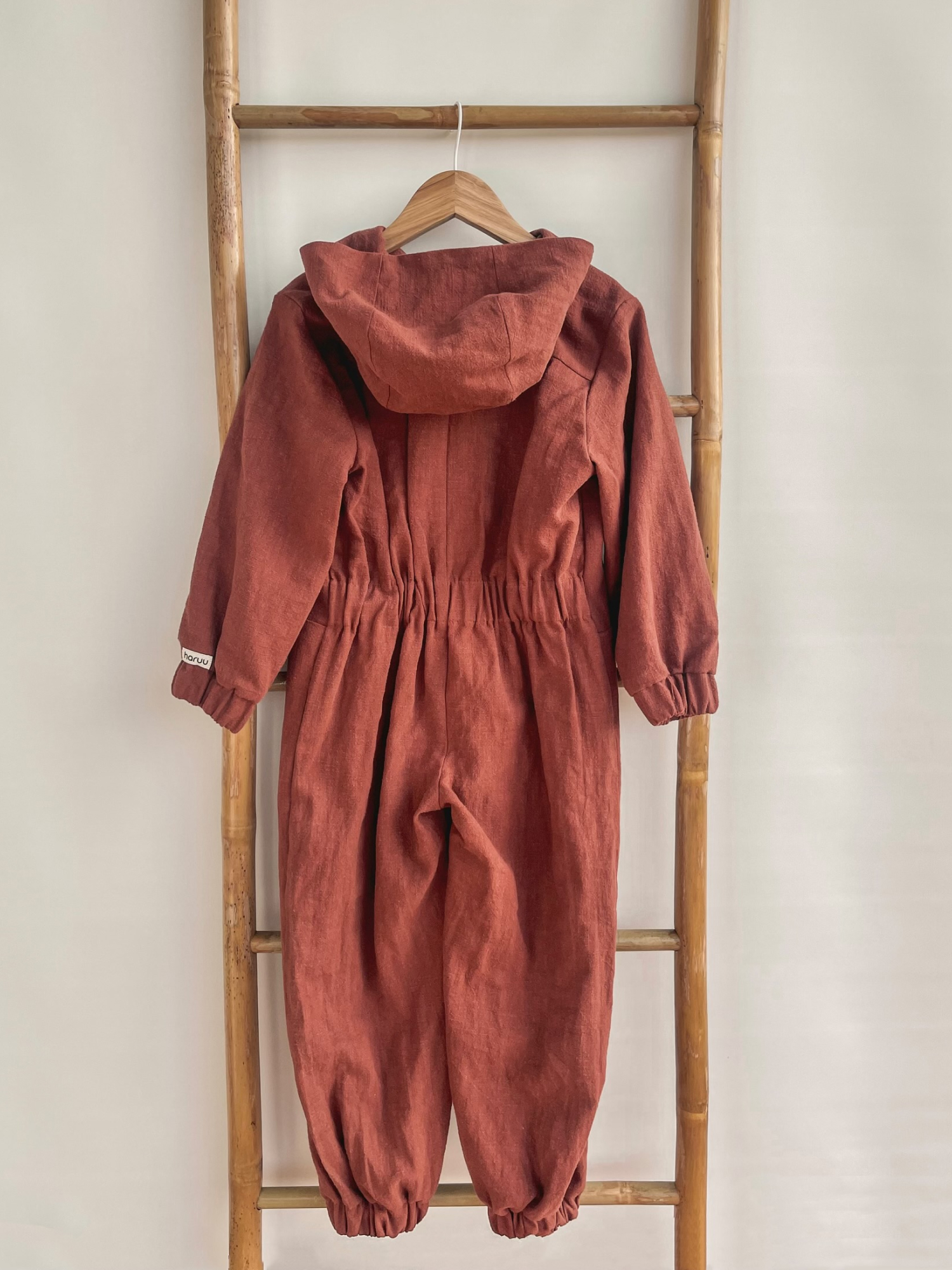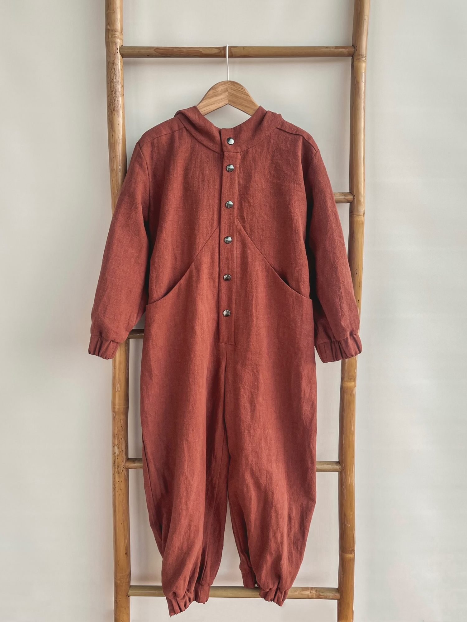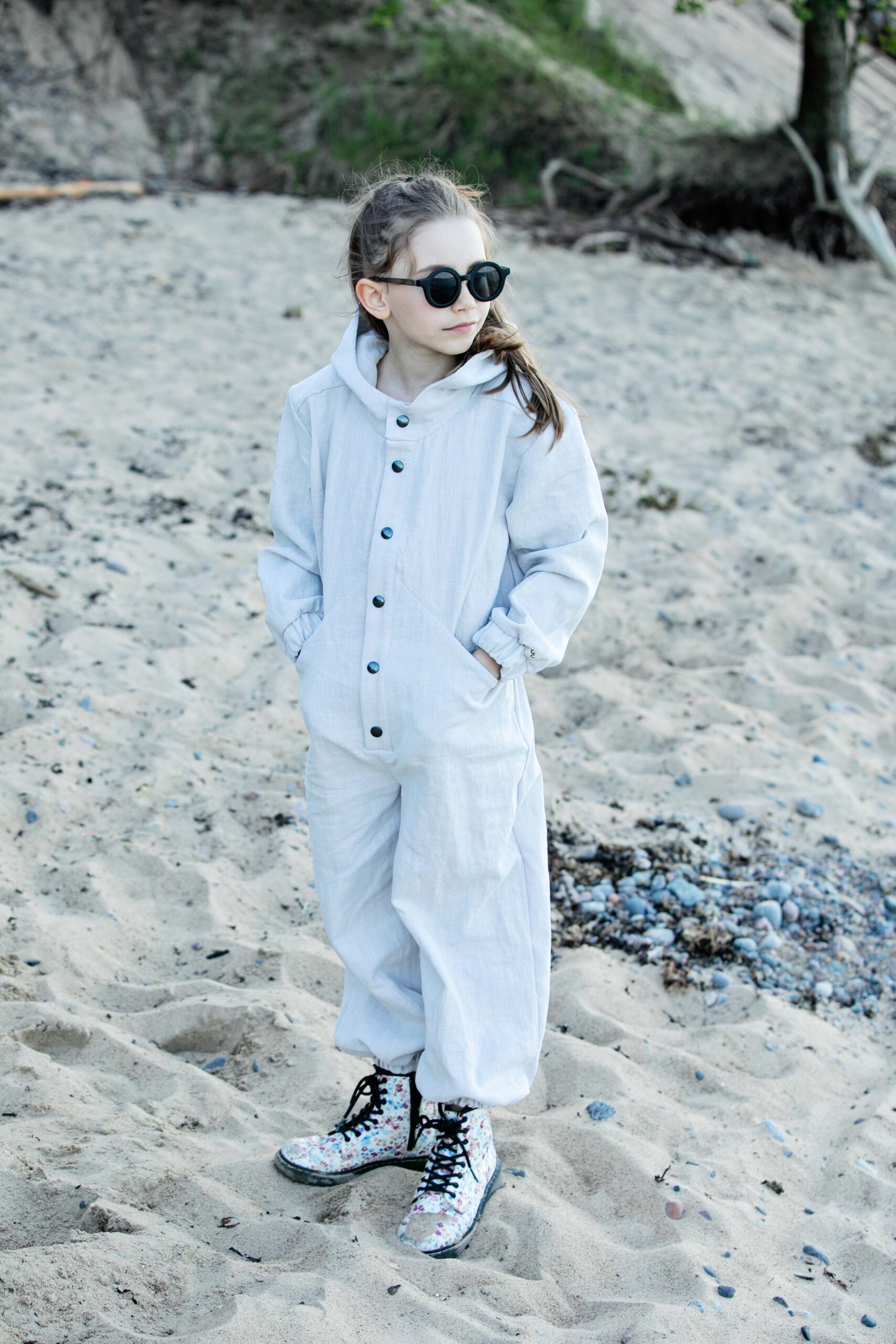 Unisex pükskostüüm on hingavast linasest materjalist, mis on pehme ning on mõeldud aastaringseks kasutamiseks. Pükskostüümi on mugav kanda, kuna sellel on piisavalt liikumisruumi, lisaks näeb see seljas välja stiilne ja eriline. Käte- ja jalaosadel on kasutatud pehmet kummi ning eest käib lahti trukkidega, mis teeb riietumise mugavaks. Pükskostüüm on valmistatud keskkonna sõbralikust kangast, mis ei kortsu.