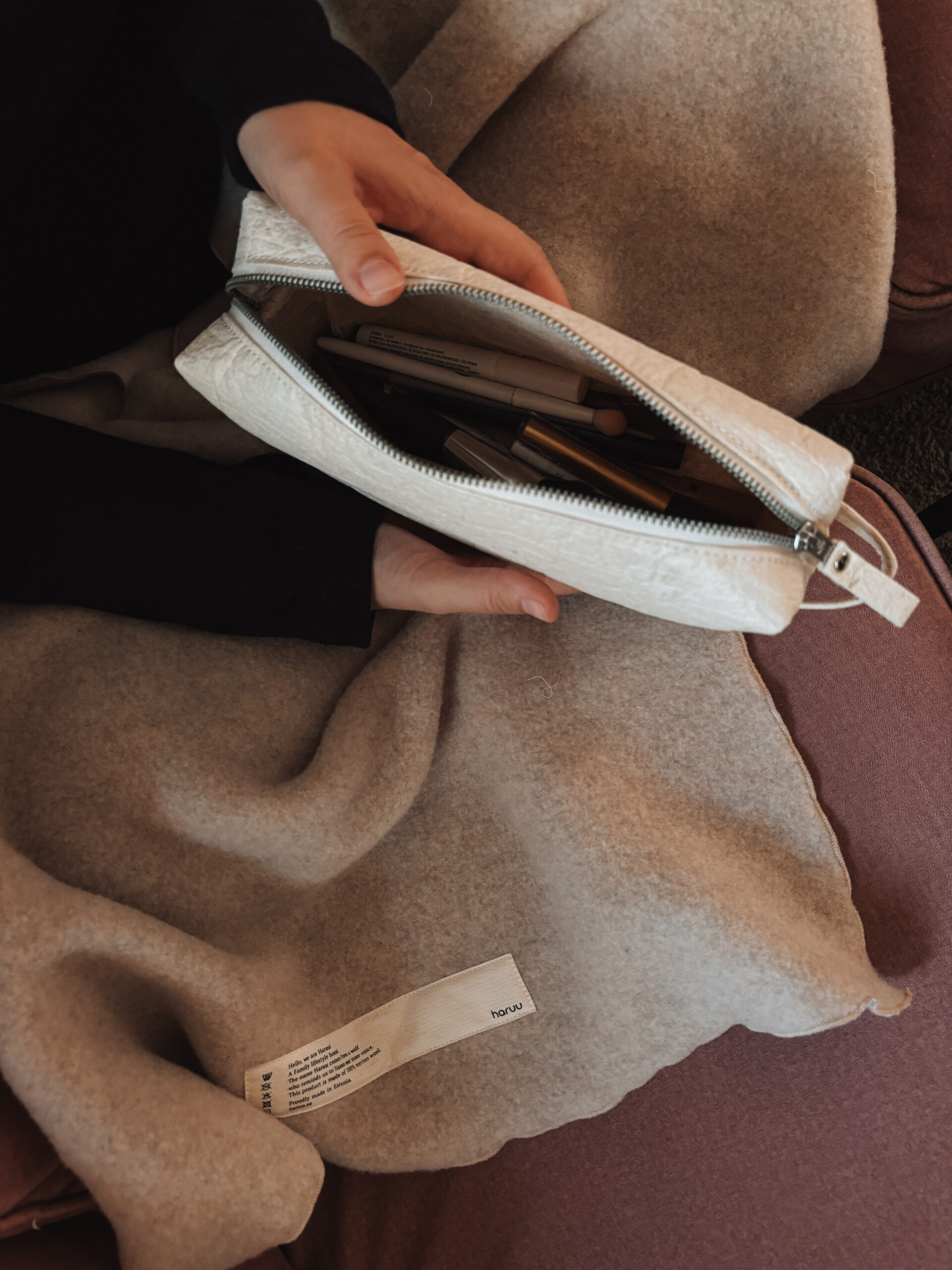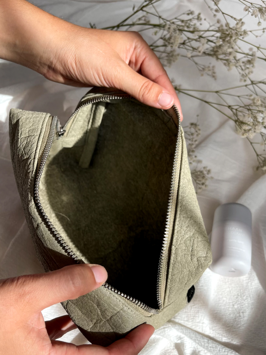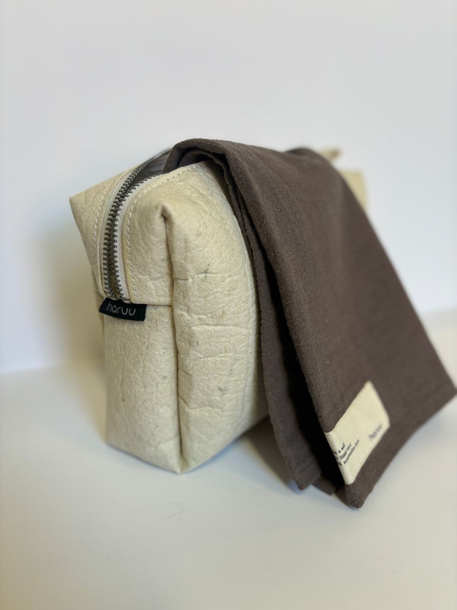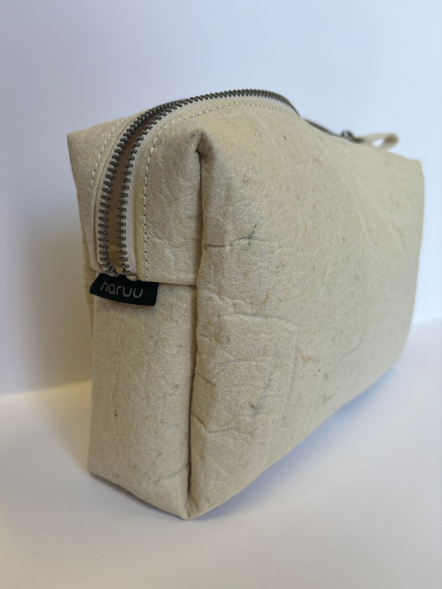 Nii võib iseloomustada Haruu kosmeetikakotti, kuhu mahuvad ära kõik Sinu lemmikud. Kompaktne ja käepärane, sobib igapäevaselt käekotti pistmiseks või tualett-tarvete reisile kaasa võtmiseks. Kosmeetikakott on valmistatud jätkusuutlikult toodetud Pinatexist ehk ananassinahast ning on pealt suletav lukuga.