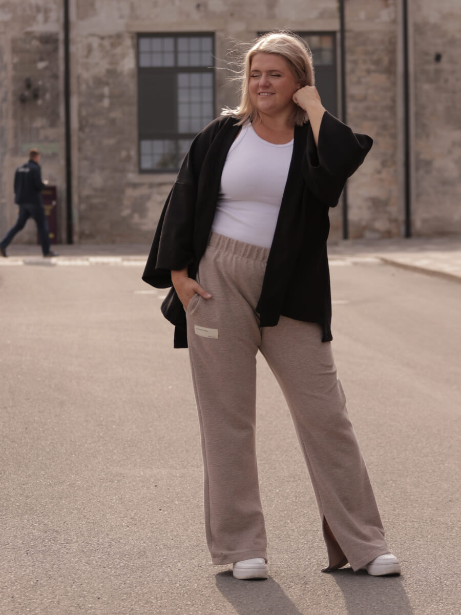 Elegantsed ja mugavad – need sõnad kirjeldavad kõige paremini uusi pükse, mis on osa HomeInEstonia x Haruu erikollektsioonist. Püksid on disainitud mõttega, et oleks võimalik kanda neid igas olukorras – olgu see kodus lõõgastumine või kontoris töötamine.
