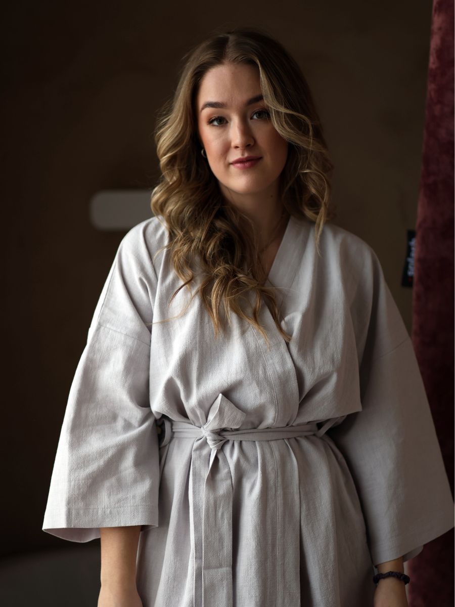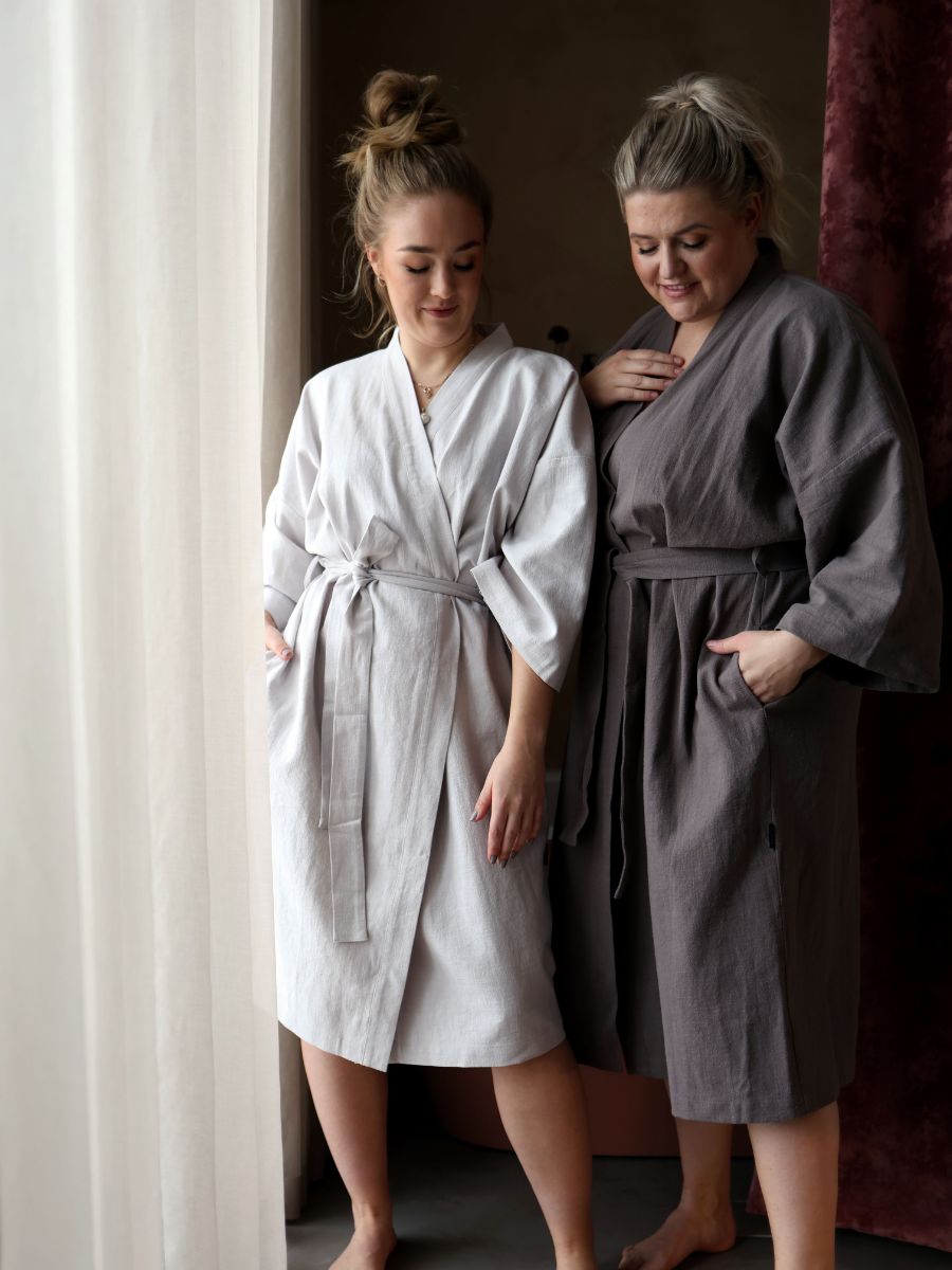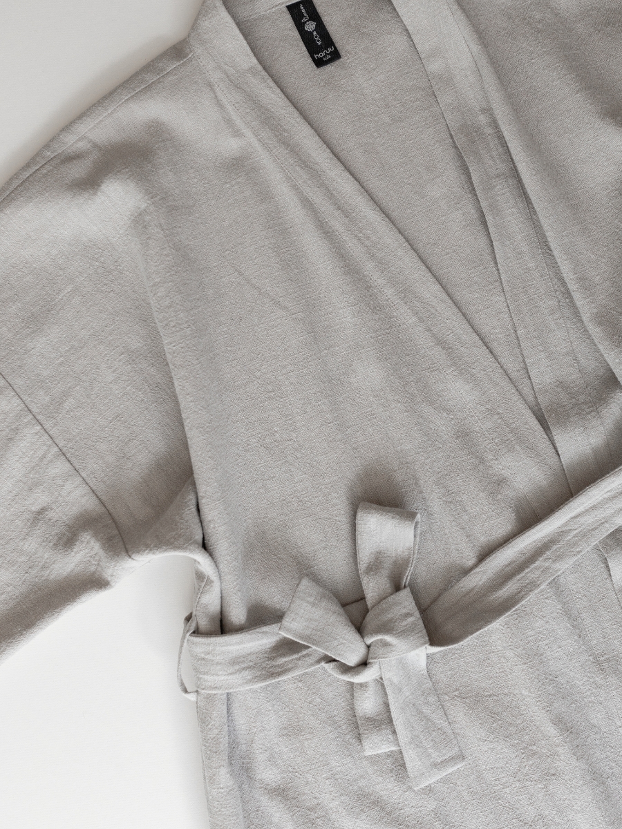 Haruu lounge-wear hommikumantel aitab häälestada Sinu ideaalset päeva. 100% kivipestud linasest hommikumantel on mugava lõikega ning hingav, mis teeb sellest päev läbi kantava kehapaitaja. Hommikumantel on skandinaavialikult minimalistliku lõikega ning keha ümbritseva vööga. Hommikumantel sobib hästi uneriiete peal kandmiseks või lõõgastumiseks kodustes tingimustes.