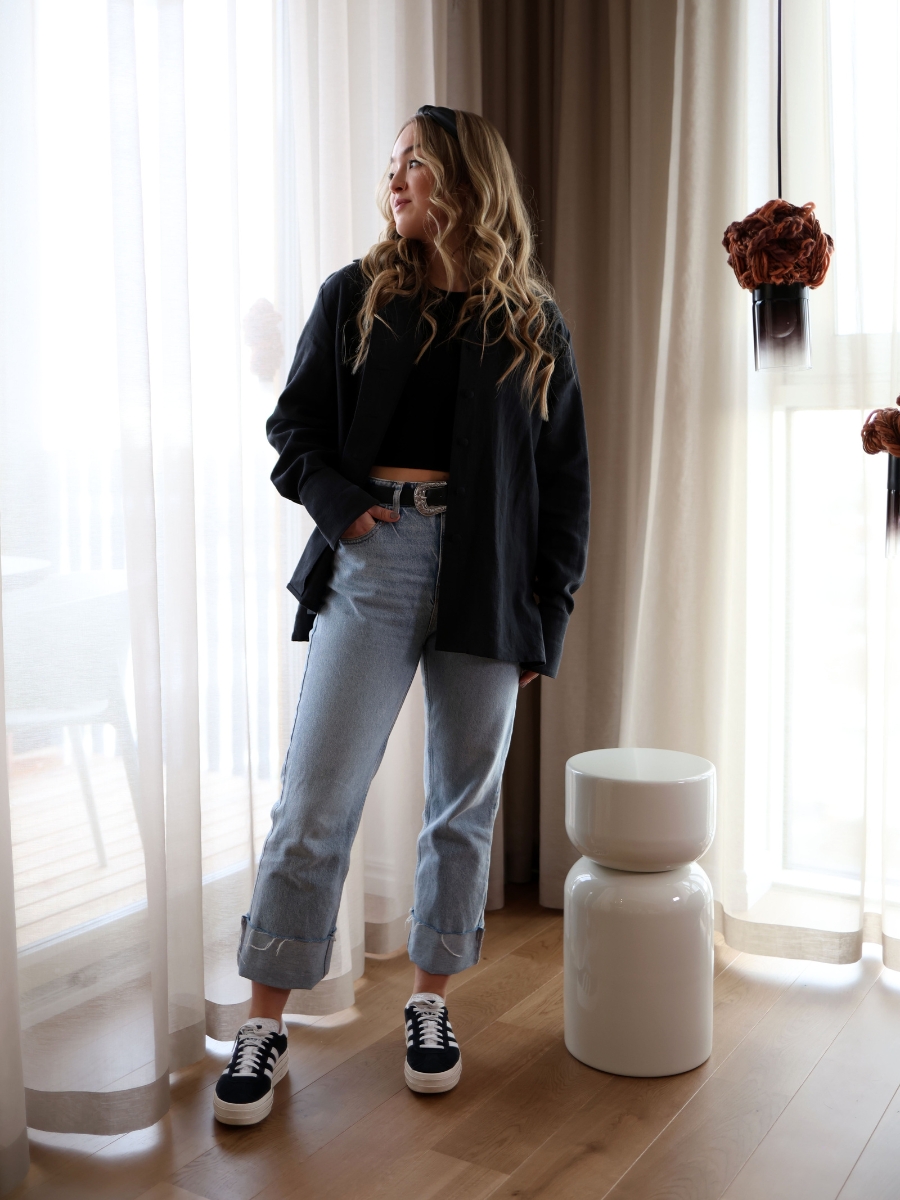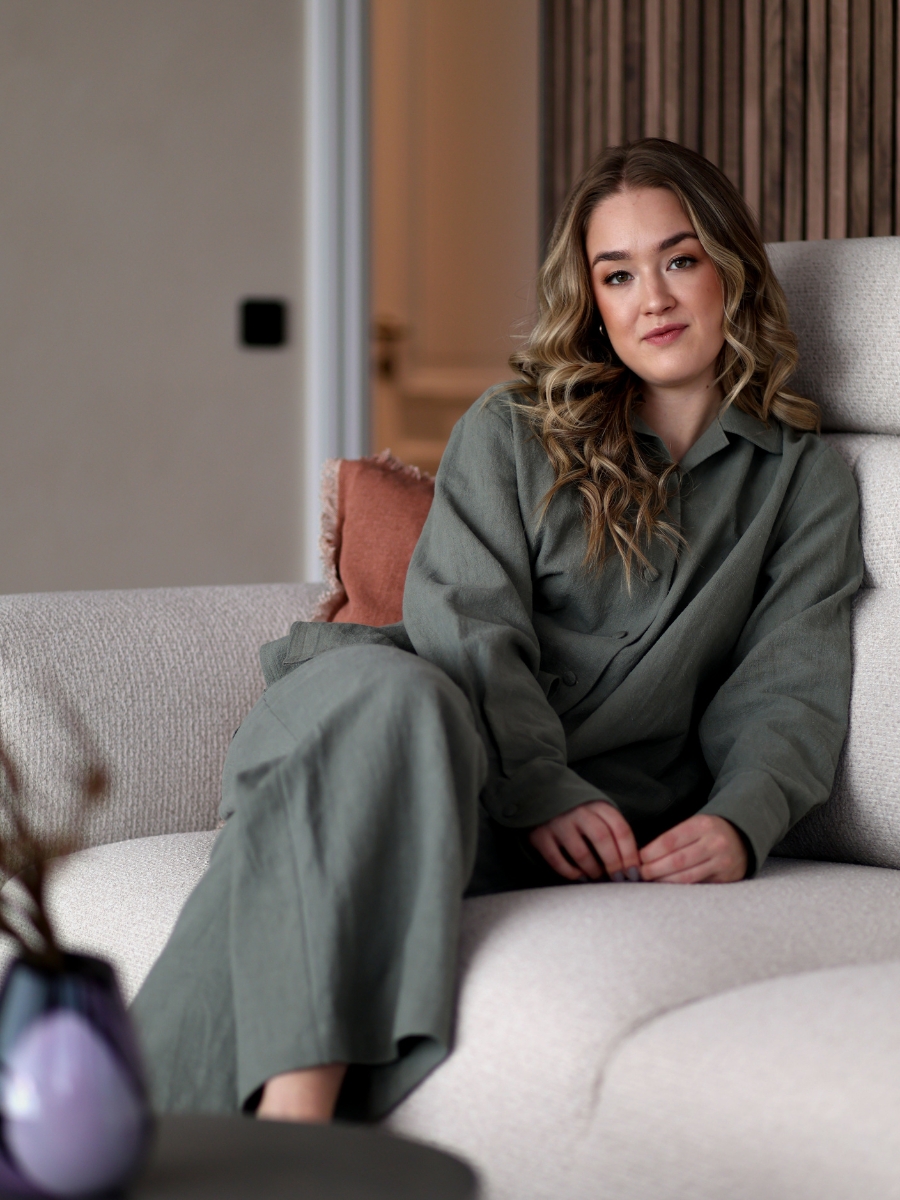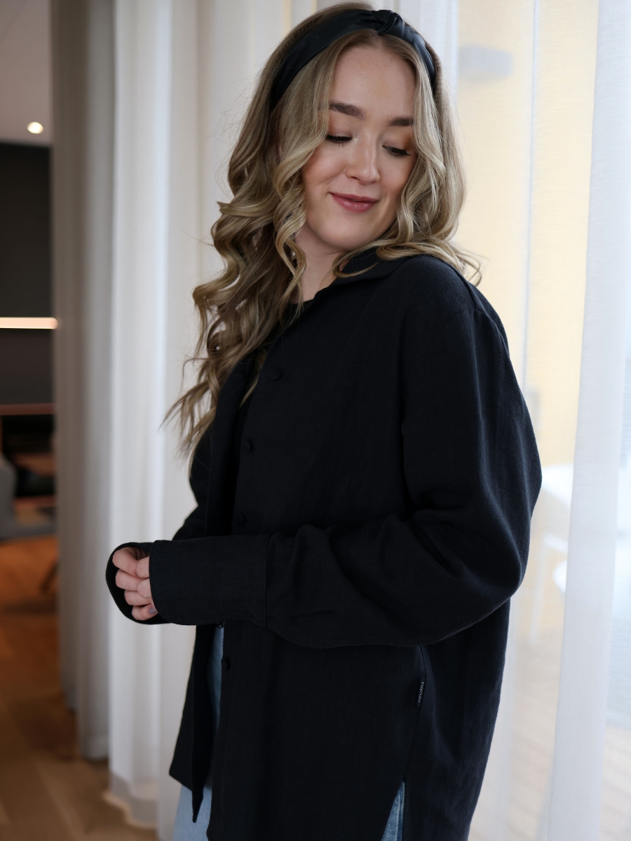 Avasta meie kollektsiooni linane triiksärk, mis ühendab endas looduse tarkuse ja ajatu disaini. Haruu linasest pluusil on kergelt over-sized lõige ja varrukad, mida saab nii üles keerata, kui ka kanda pikemalt, vastavalt eelistusele. Erilist tähelepanu köidavad hoolikalt läbimõeldud varrukadetailid, mis annavad klassikalisele lõikele kaasaegse puudutuse.Linasest pluusi on lihtne kanda peaaegu nagu jakina, sest kangaga kaetud nööbid võimaldavad seda. Sobib kanda igapäevaselt kui ka pidulikematel üritustel. Pluusiga samasse komplekti kuuluvad ka linased püksid.