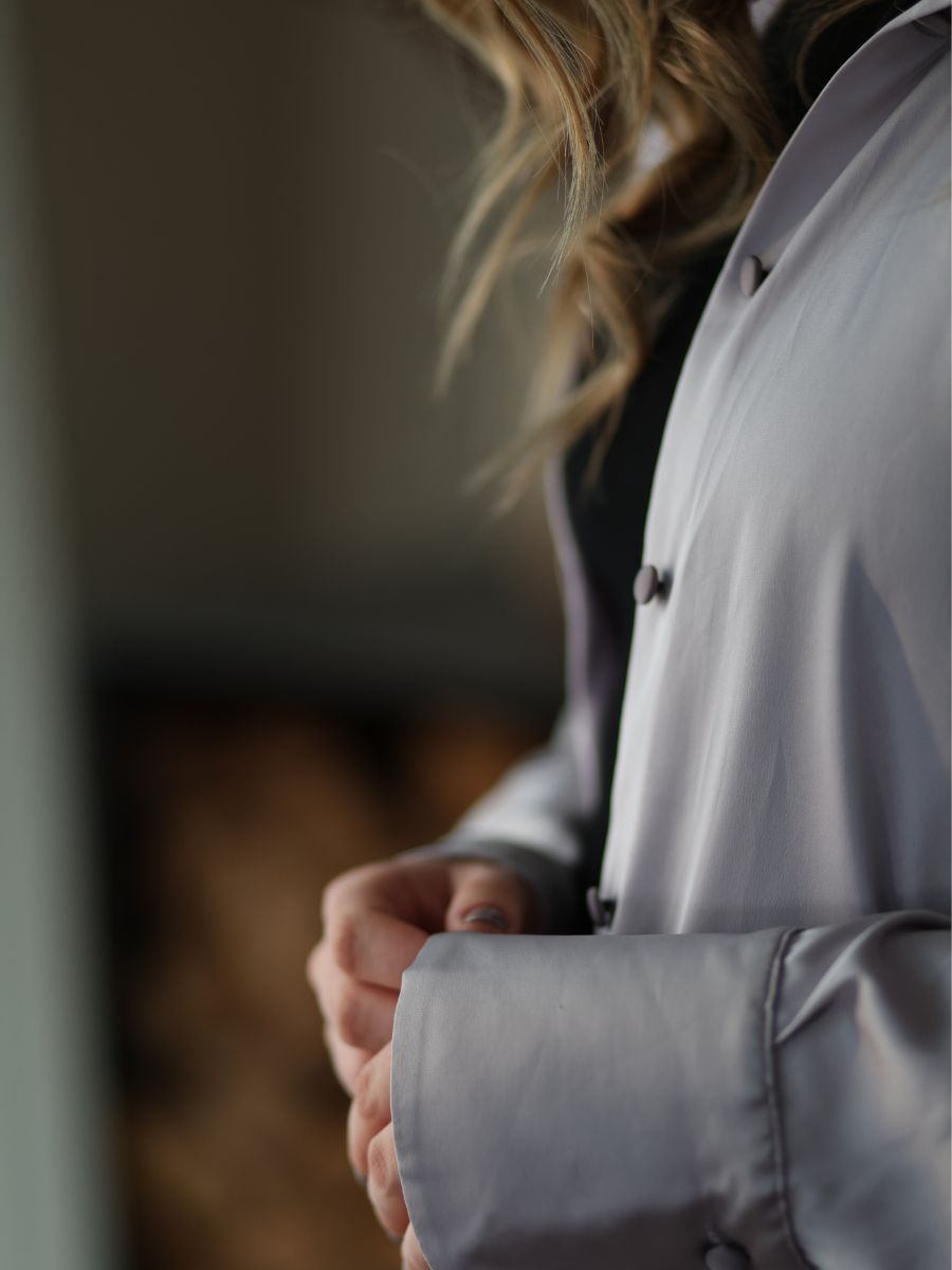 Nööbid annavad sellele pluusile mitmekülgsust, võimaldades seda kanda kihiliselt, jättes nööbid eest lahti ja kombineerides selle alussärgiga. Samas nööbid eest kinni loob minimalistlikuma ja rafineerituma mulje.